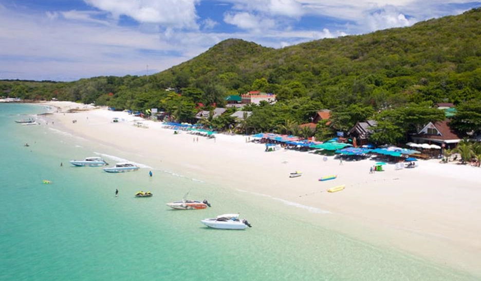 Coral Island (Koh Lan) is the largest of the "near islands", off south Pattaya. It is at the southeast end of the Bay of Bangkok, on the east side of the Gulf of Siam. Administratively Ko Lan belongs to the Amphoe Bang Lamung, Chonburi. Most of Ko Lan's beaches are on its west side. Most visited is Tawaen Beach, where there is a small harbour. You will enjoy the sea, sun sand and the length of the beach is lined with small tourist shops.